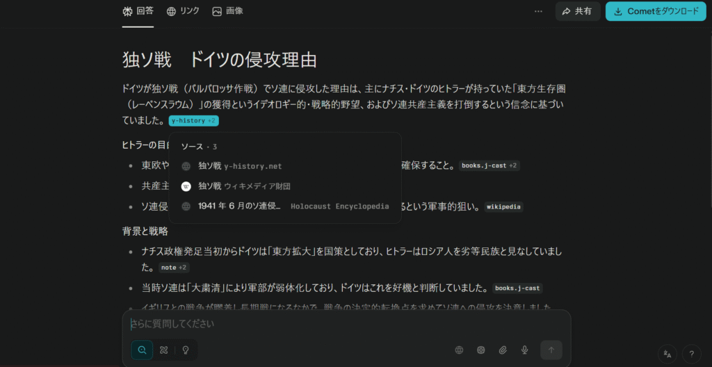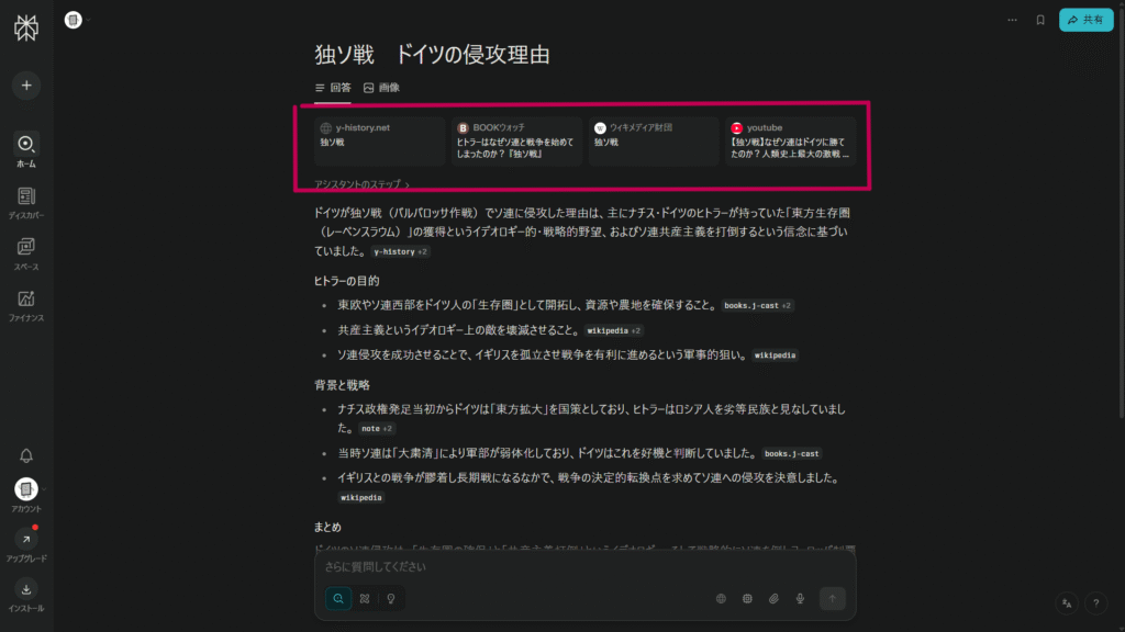 このようなユニークな機能をたくさん持っているのがPerplexityの特徴の一つでもあります。