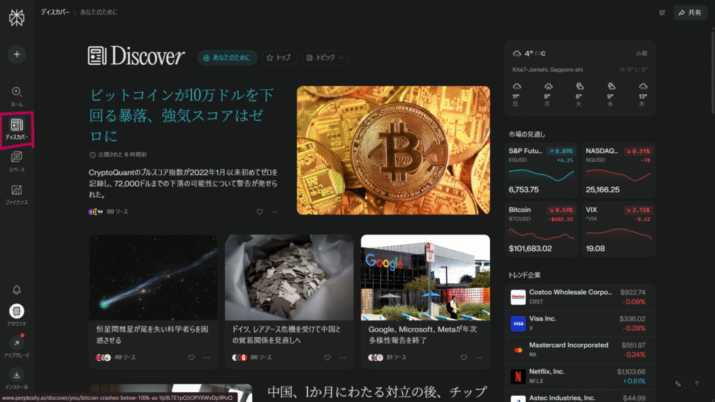 これまで見てきたように、Perplexityには高度な検索機能が備わっているだけでなく、Discover機能・Finance機能など他のツールも充実しているというのが利点です。