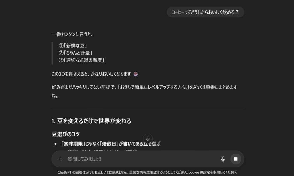 しかし一方でPerplexityは「会話」よりかは一方的な事実の「提供」をしているようなものなので、Perplexityに発想を手伝ってもらうことは難しいです。