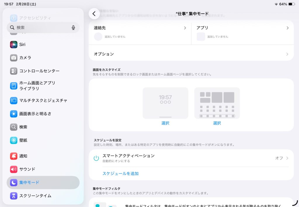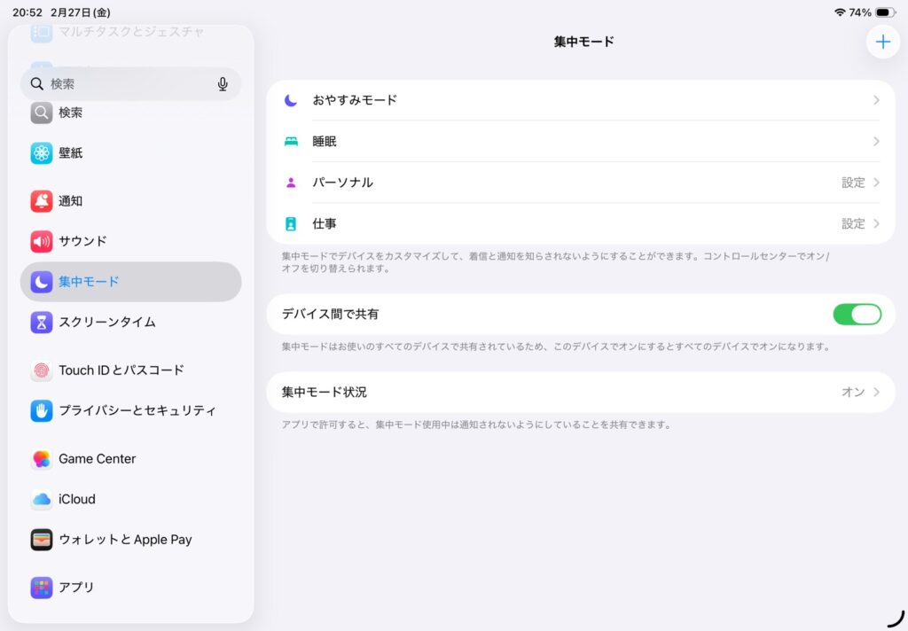 iPadの集中モードは、作業や休憩中に気が散る通知を減らし、集中できる状態を作る機能です。