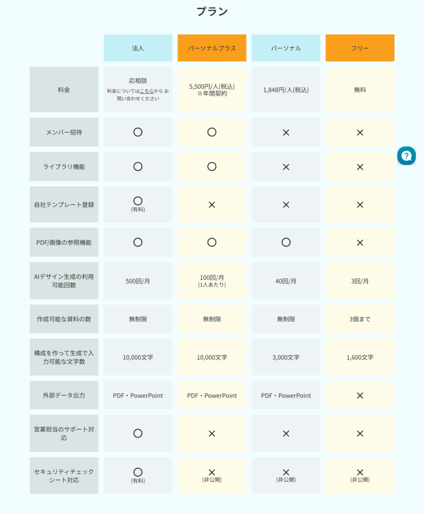 ほかのスライド生成AIとの相違点