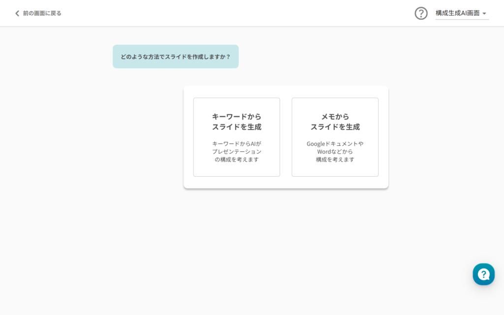 他の選択肢を選択してもスライドは生成可能ですが、内容を厳密かつ正確に作りたい場合は『構成を作って生成』が一番良いと思います。