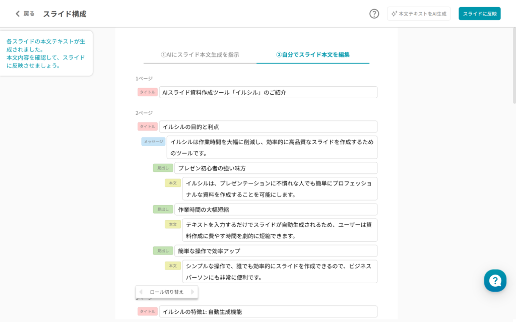 ですが、イルシルで生成したスライドではその場で迅速な修正が可能です。