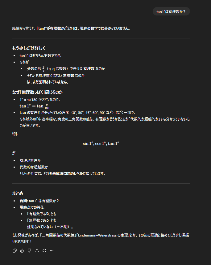 同じ質問を通常のチャットとthinking機能を使ったチャットにしてみましょう。