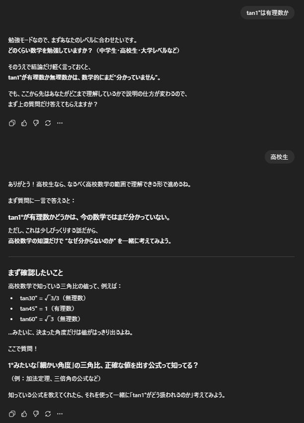このようにstudyモードは自身のレベルにあった説明を提供してくれるだけでなく、我々の学習をより有意義にするための会話の工夫などがみられる学生には是非お勧めしたい機能だった。