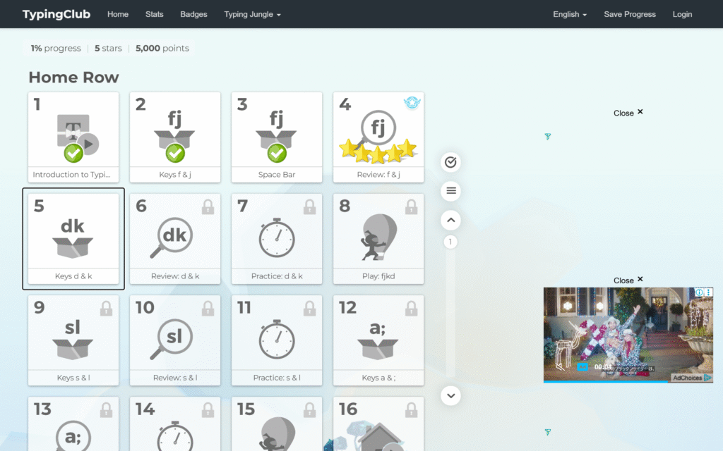 英語のタイピング練習サイトはたくさん出回っていますが、Typing clubほど初心者に優しい練習サイトはあまり見かけません。良心的!!