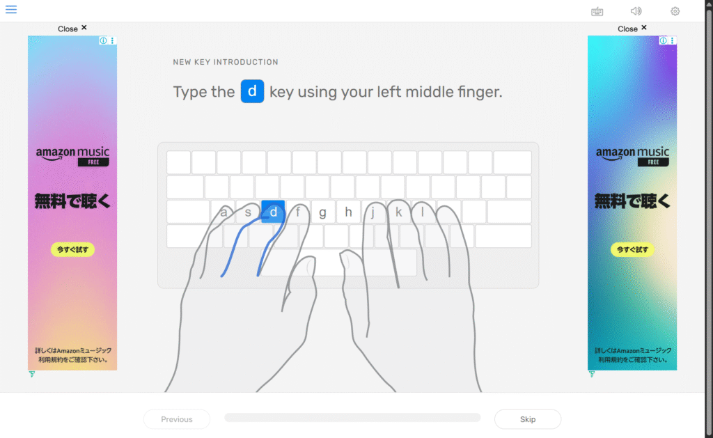 まずサイトにGoogleやappleでログインするとf, jを練習させられます。