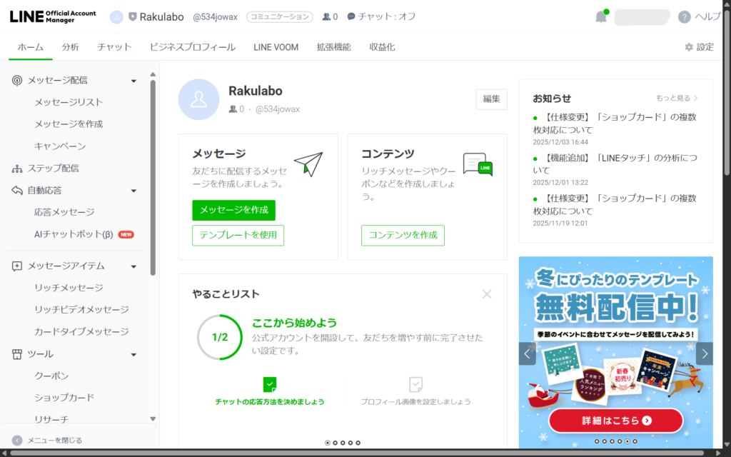 ⑧PCでLine Official Accountにログインします。