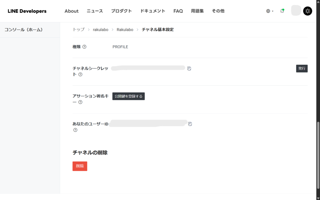 ⑭チャネル基本設定を開きユーザーIDをコピーします。