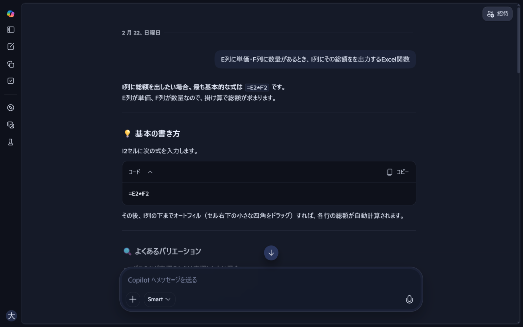 ほかのAIでもできる可能性あるのですが、Copilotは一応Microsoft発ということもあり、Excelの関数を出力するのにも適しています。