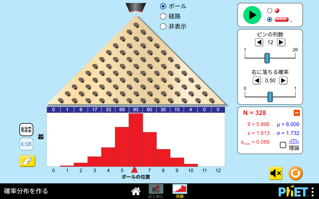 ボールの落ちる位置は正規分布に従うという法則だね
