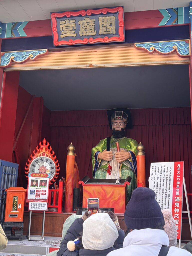 帰りに温泉街を散策したのですが、エンマ大王が居てそこに観光客がめちゃくちゃ集まっていました。