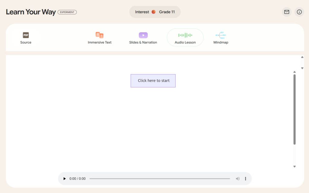 「Learn Your Way」はこの理論に着想を得て、パーソナライズされたテキストを元に、多様なコンテンツを自動で生成します。