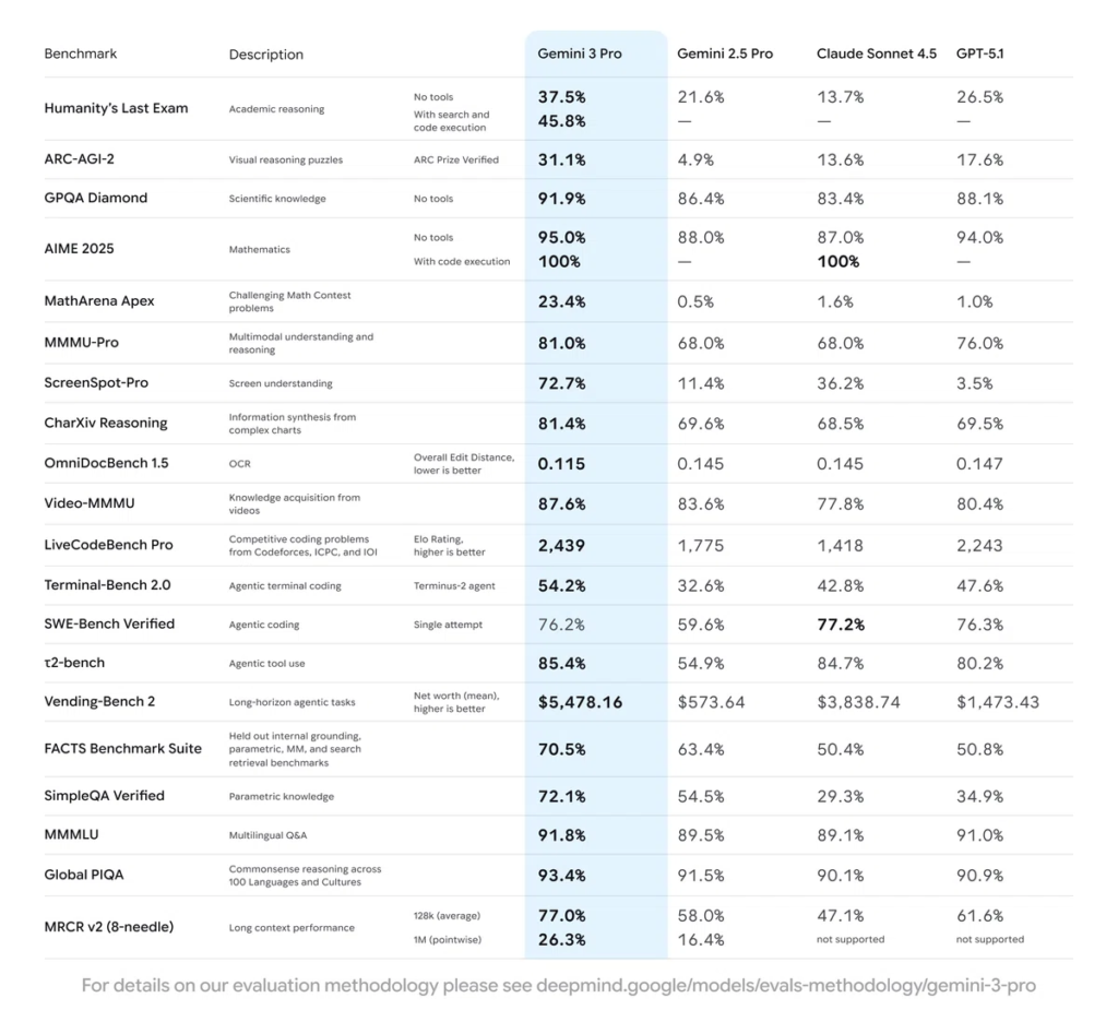 Gemini 3.0 Proが達成した成果は、専門的なベンチマークテストの結果からも明らかです。